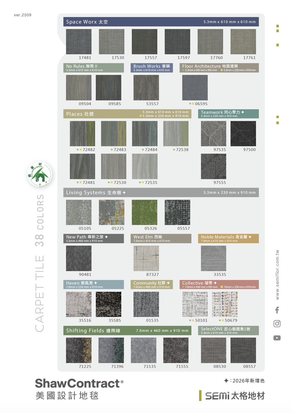 太格綠建材方塊地毯顏色表